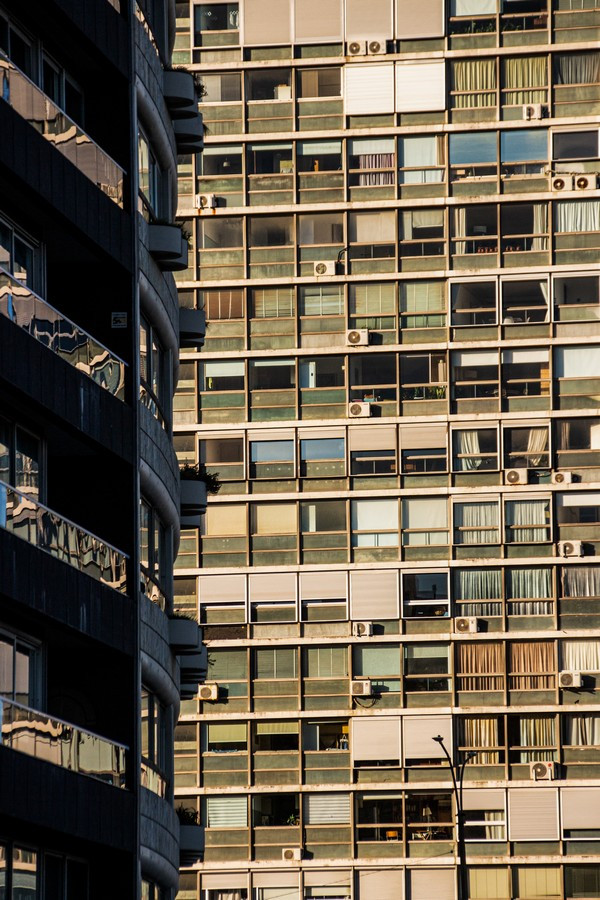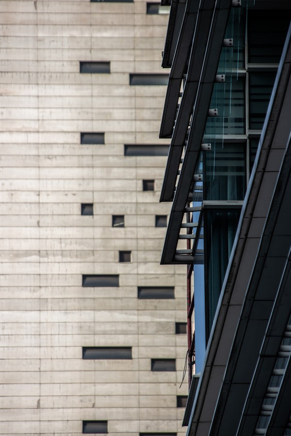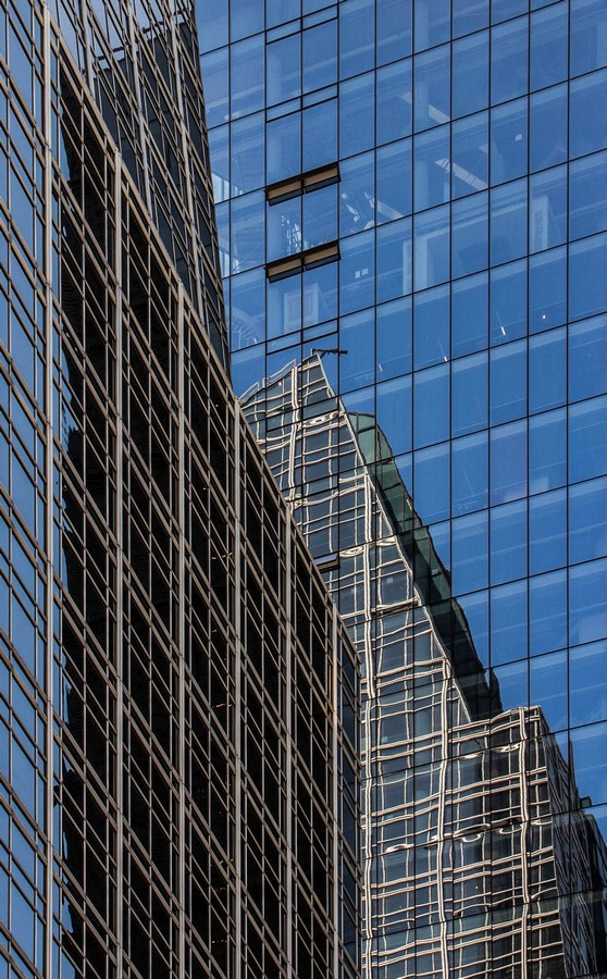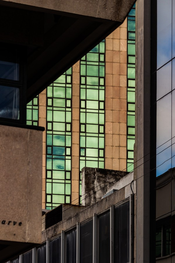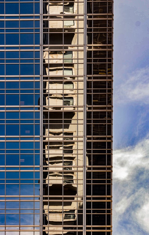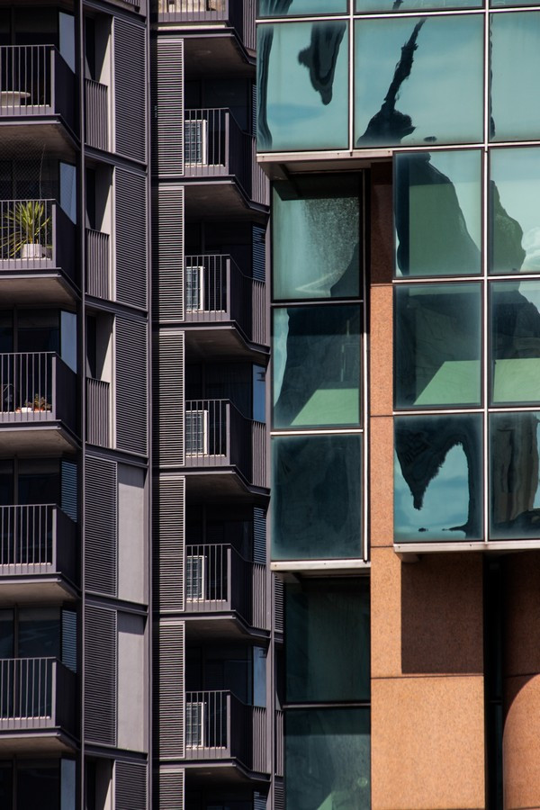 Las fotografías surgen de caminar la ciudad con la mirada puesta en los bordes: el recorte cerrado, la vertical exacerbada, el momento preciso en que la luz del atardecer vuelve dorado un volumen o enfría los vidrios hasta volverlos espejo del entorno. En muchos encuadres desaparece el horizonte y también la escala humana; lo que queda es un campo de fuerzas: tramas que se ordenan y se desordenan, reflejos que mezclan edificios de épocas distintas, sombras que hacen vibrar la superficie. La cámara no documenta tanto un edificio concreto como la sensación de estar rodeado por una masa arquitectónica que nos excede.