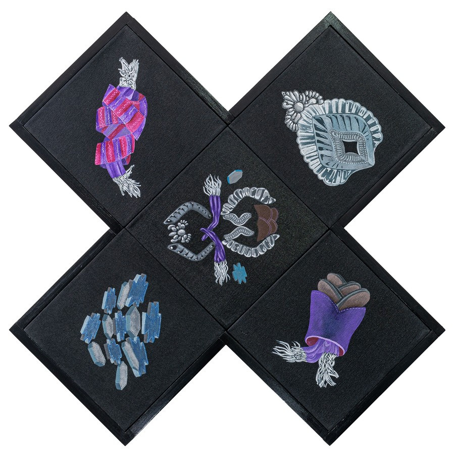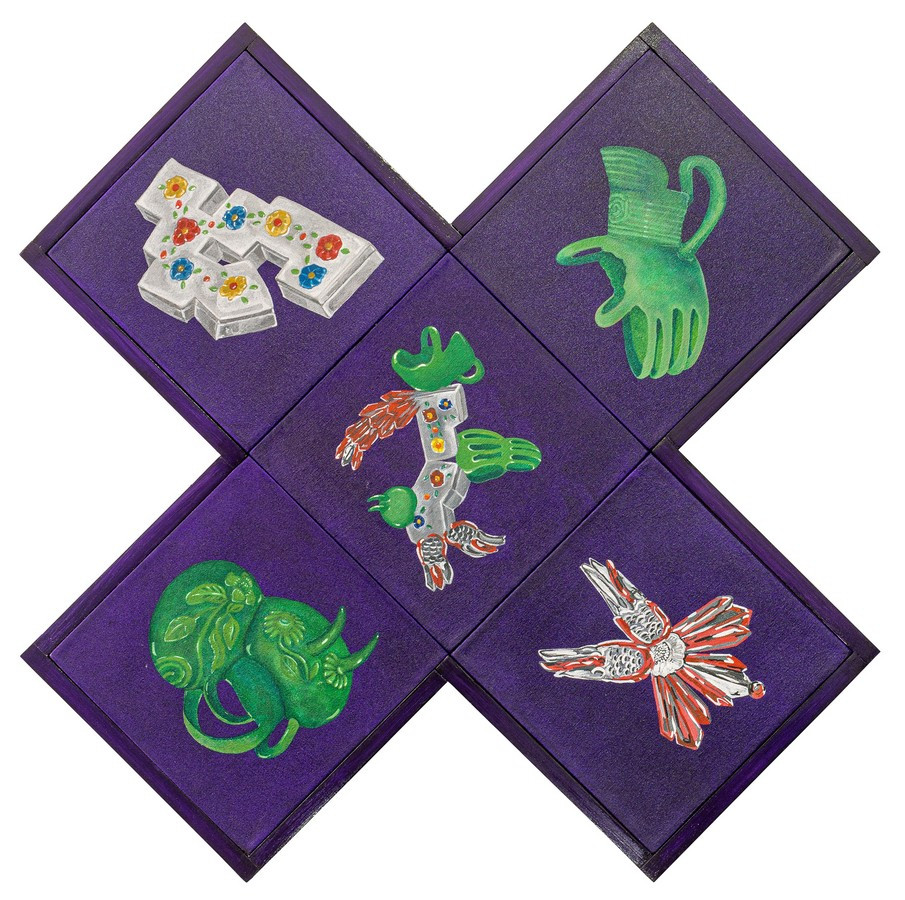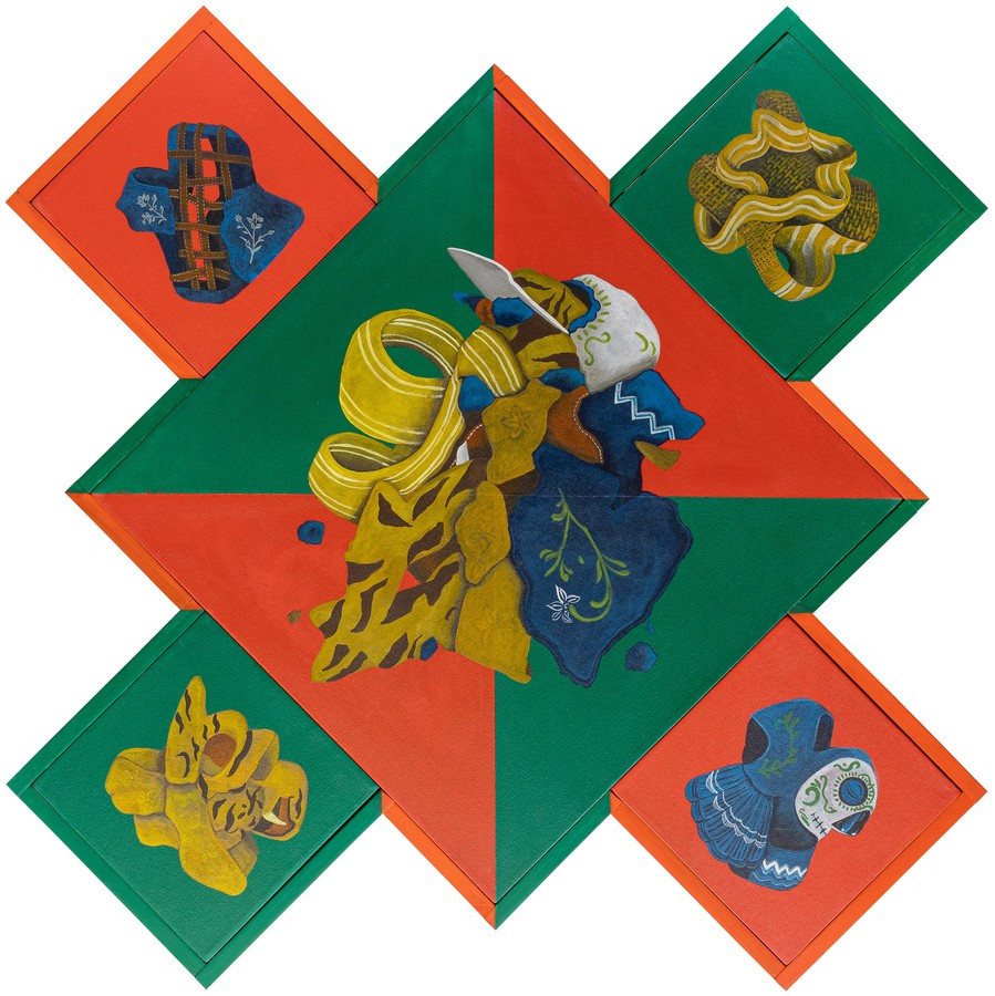 Matriz políptica oaxaqueña nace del deseo de mirar a Oaxaca desde adentro: desde sus objetos cotidianos, sus colores, su memoria y las huellas invisibles que deja la vida diaria. Cada pintura recoge fragmentos de nuestra cultura popular y los vuelve a mezclar para mostrar que la identidad no es algo fijo, sino un territorio que cambia, respira y se transforma con nosotros.