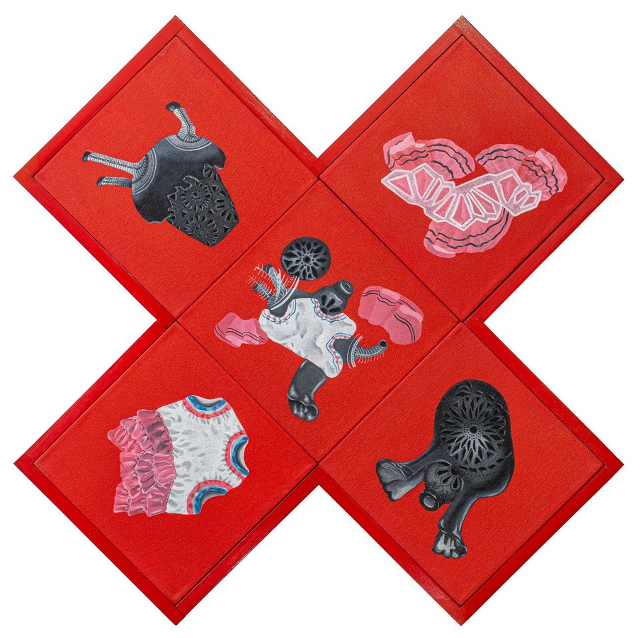 Acrílico sobre cuatro bastidores de tela enmarcados